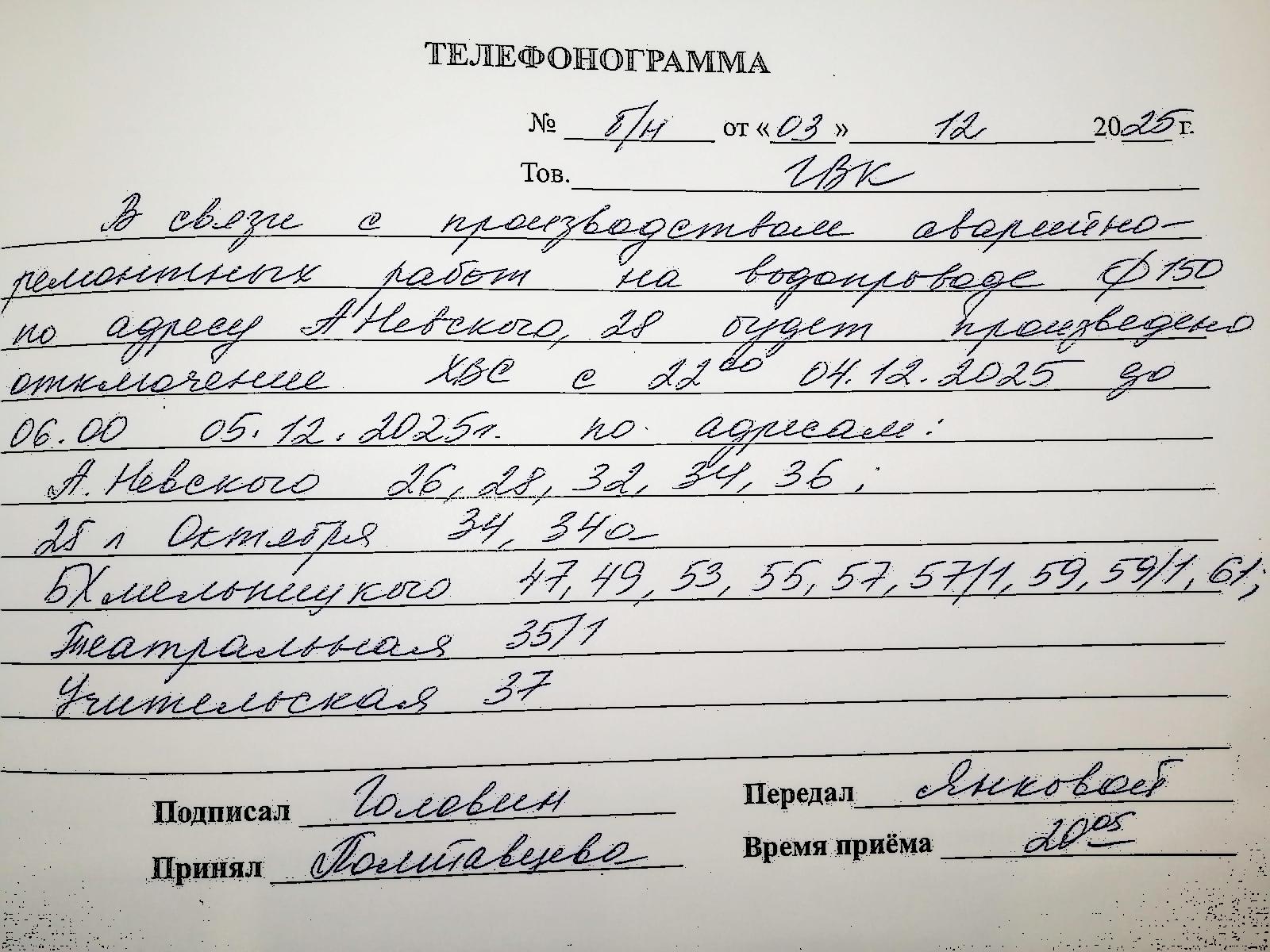 Аварийное отключение электроэнергии 02.02.2026
