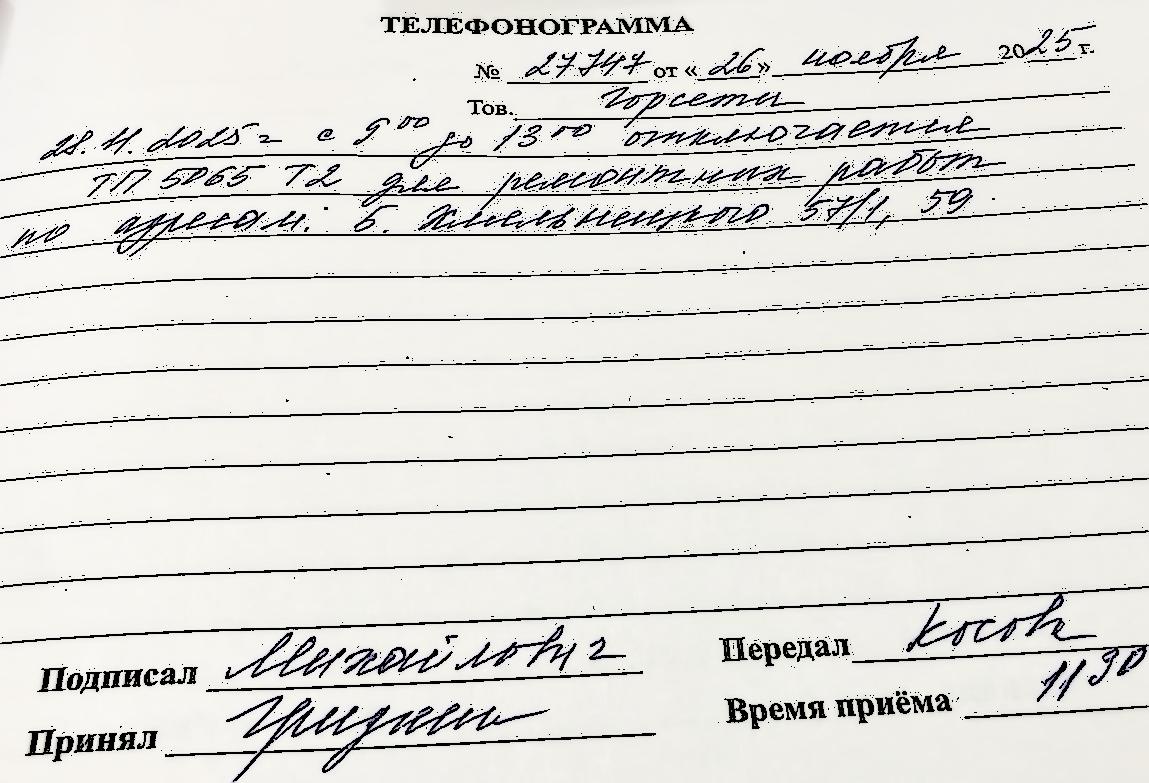 Аварийное отключение электроэнергии в районе Учительской и 25 лет Октября