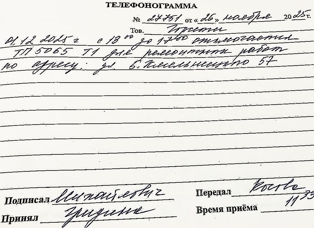 Причина Ремонтные работы на ТП-5001,5047,5118,5112,5074,4649,5016,5039,5065,5005,5043,5006,5041,5061,5129